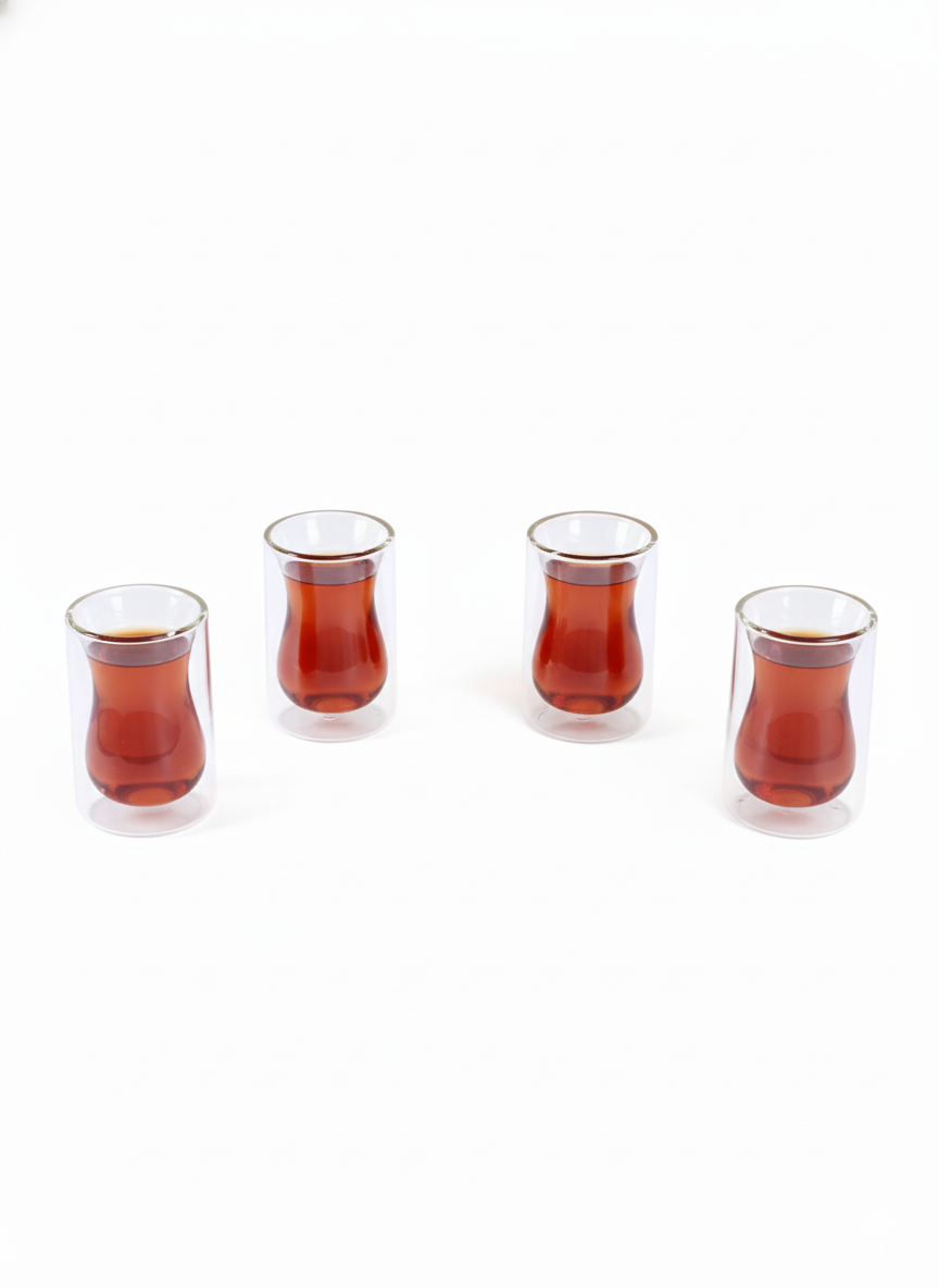 Elevate your tea time with the Noor-e-Kahwa Set, featuring lightweight double-walled glass cups paired with bohemian-style stoneware plates. The blend of transparent glass and textured ceramic creates a stylish mix-and-match look, perfect for both everyday moments and special gatherings.